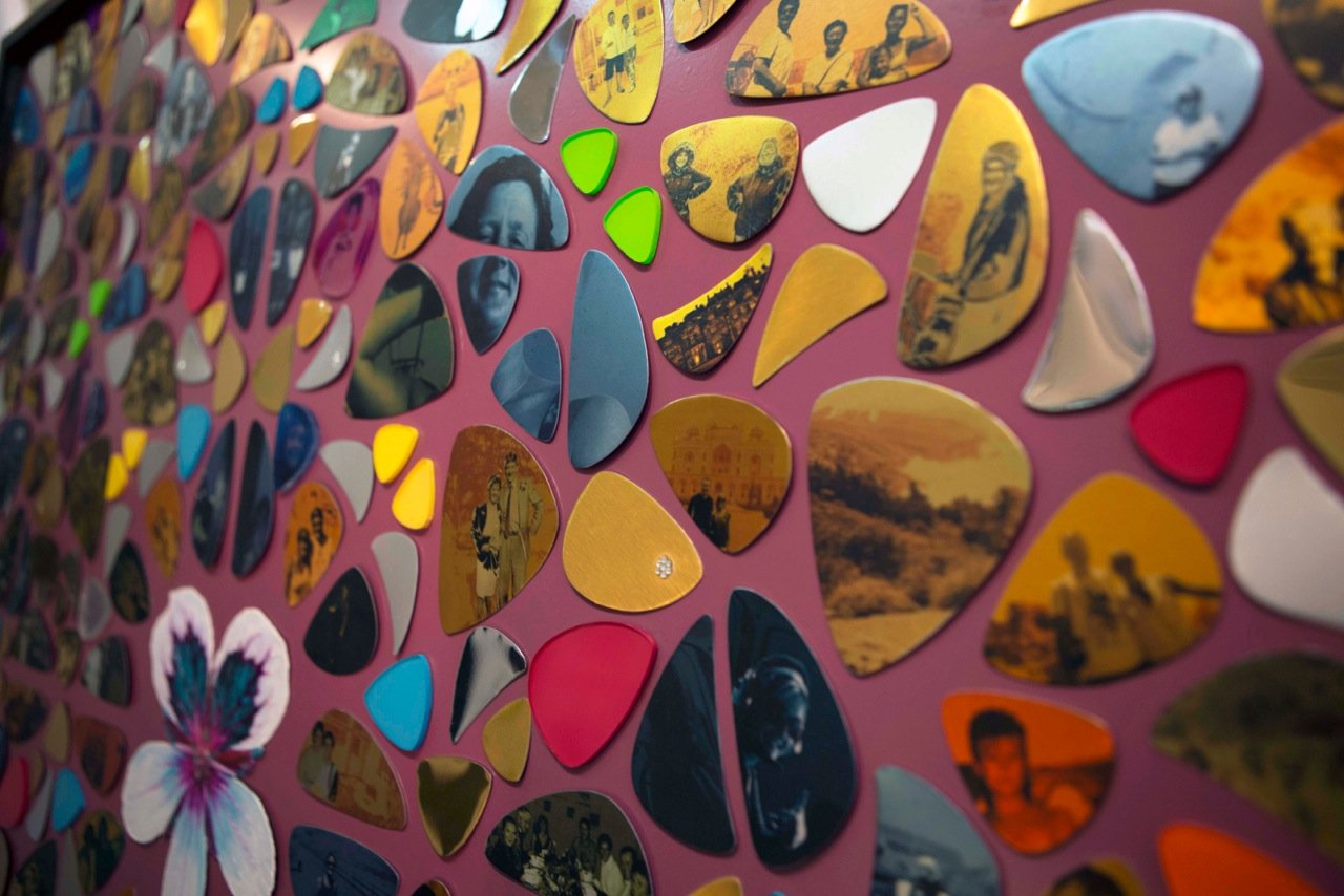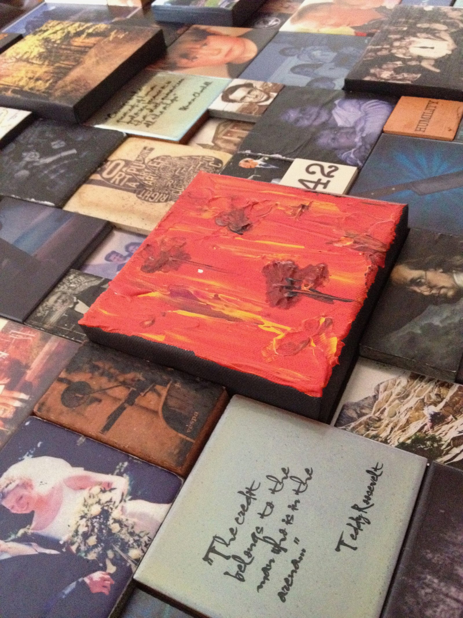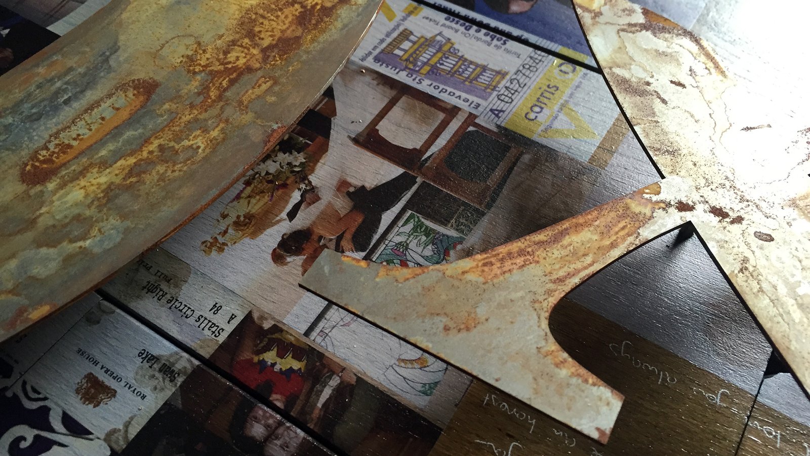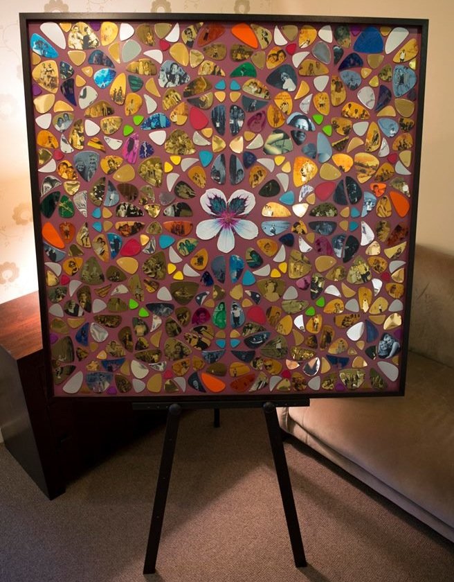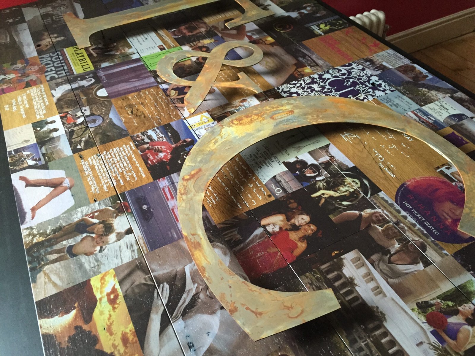 Collage art makes for a impactful gift. Larger commissions have tended to be tailored to specific individuals to celebrate a milestone such as a birthday or anniversary with a celebration of their life or achievements perhaps. Often an emotional piece for the recipient. I work with many substrates decorating with art, identities, icons and text specific to your wish.